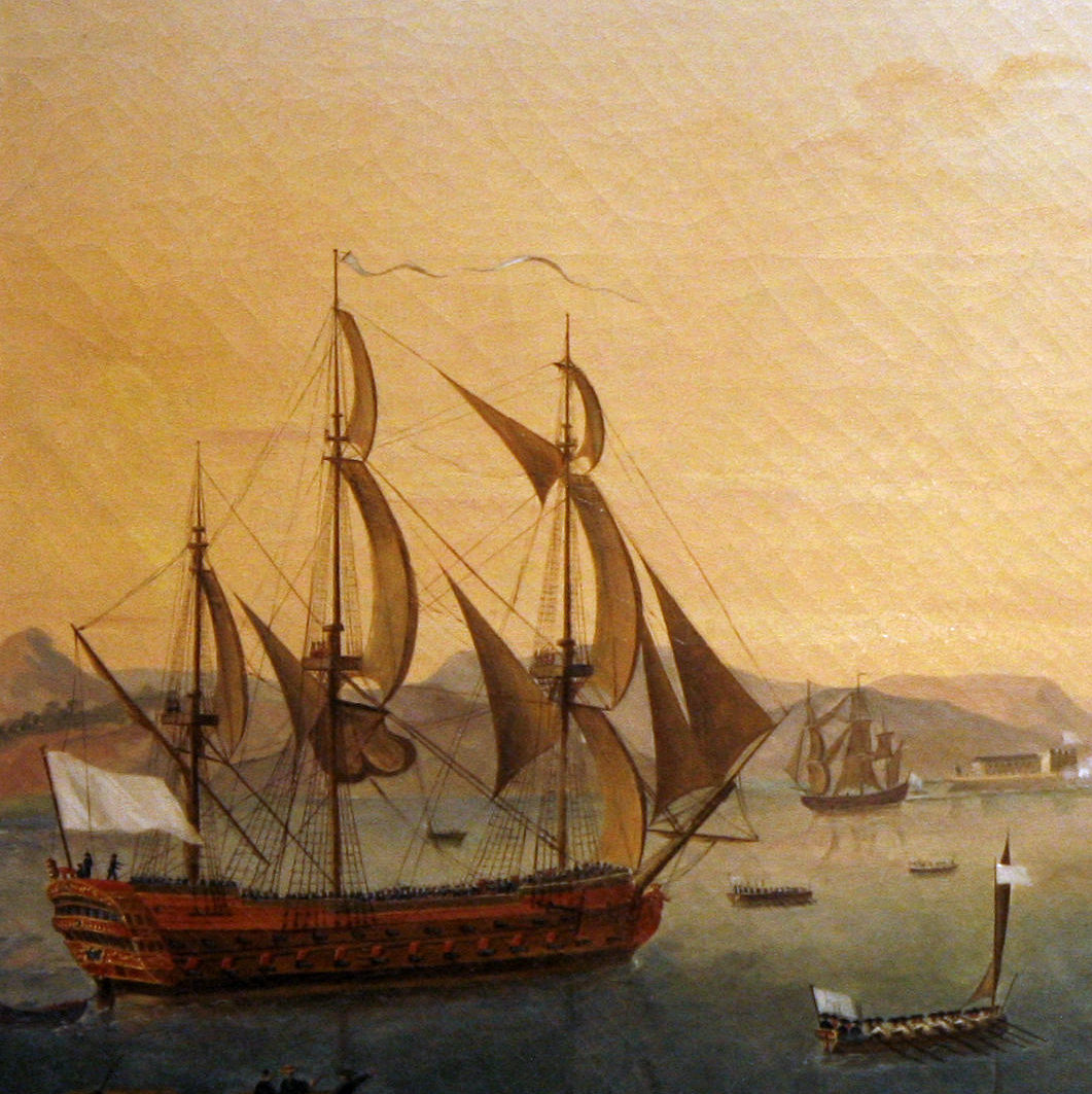 Vaisseau de guerre français, au port d'Anville, arborant le pavillon blanc royal en 1787.
